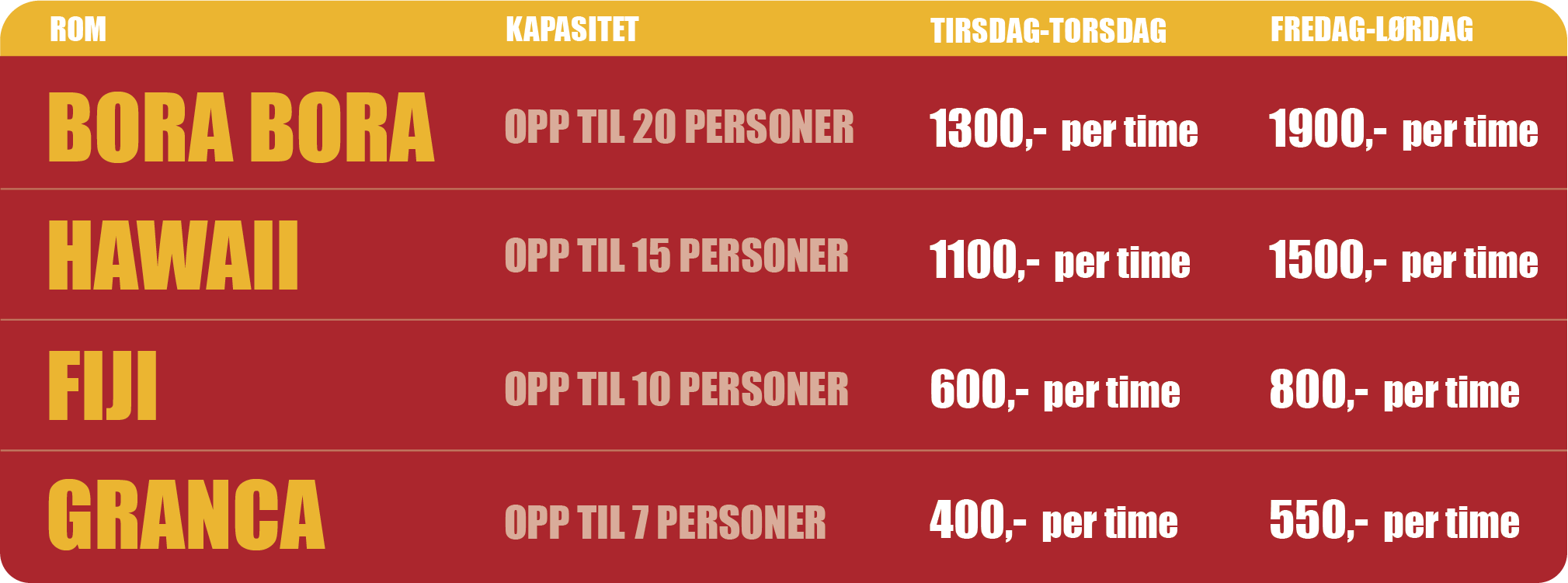 Høy allsangfaktor og tropisk vibe! Dropp innom gratis, eller book deres eget rom.
