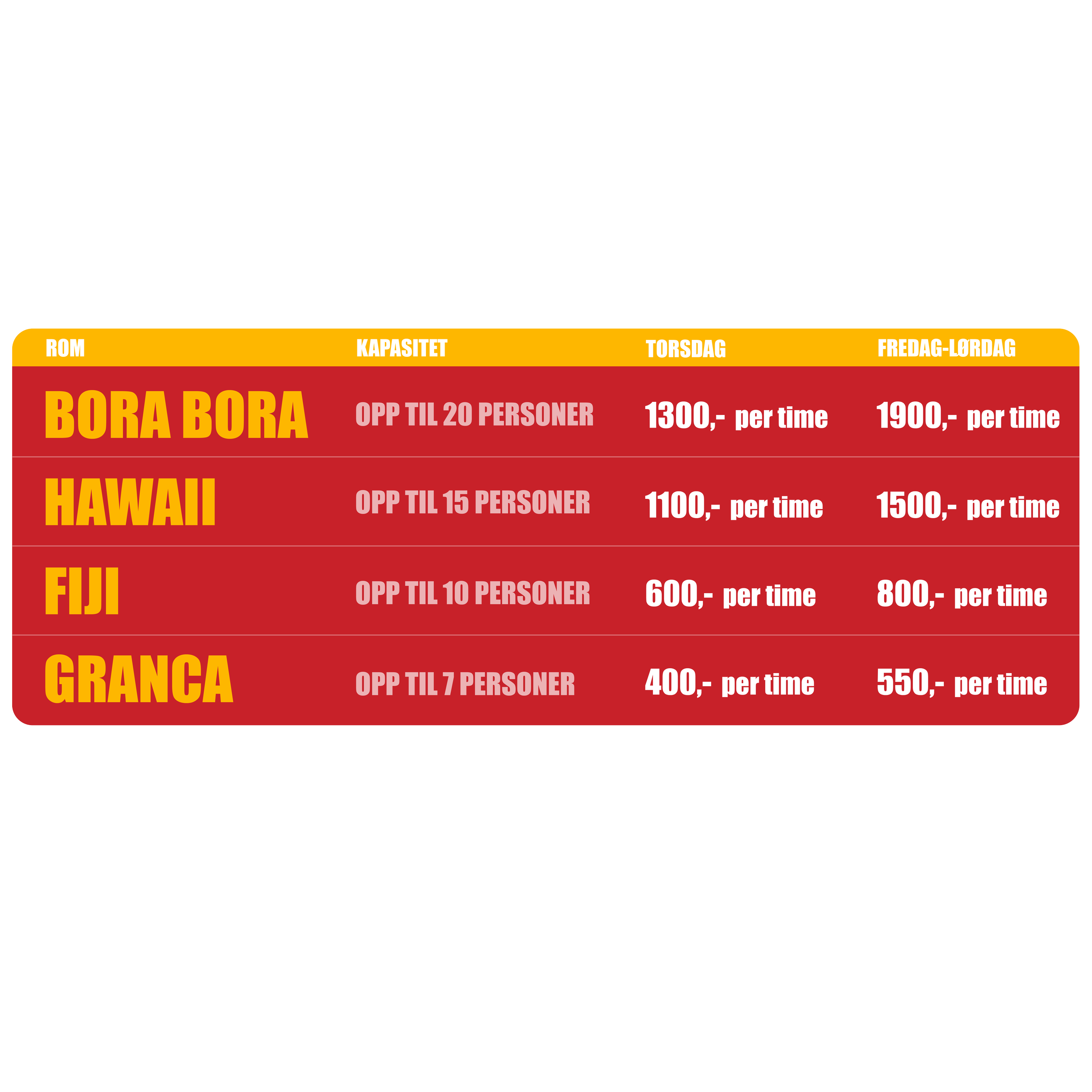 Høy allsangfaktor og tropisk vibe! Dropp innom gratis, eller book deres eget rom.